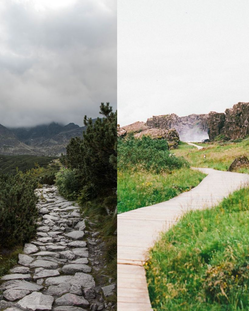 Perhaps leading me to a better trail one lined with pink and purple flowers waterfalls cascading around every corner the loud hum of the water hitting the rocks greenery painted in every direction no hills no mountains to climb just simple and straight- low impact